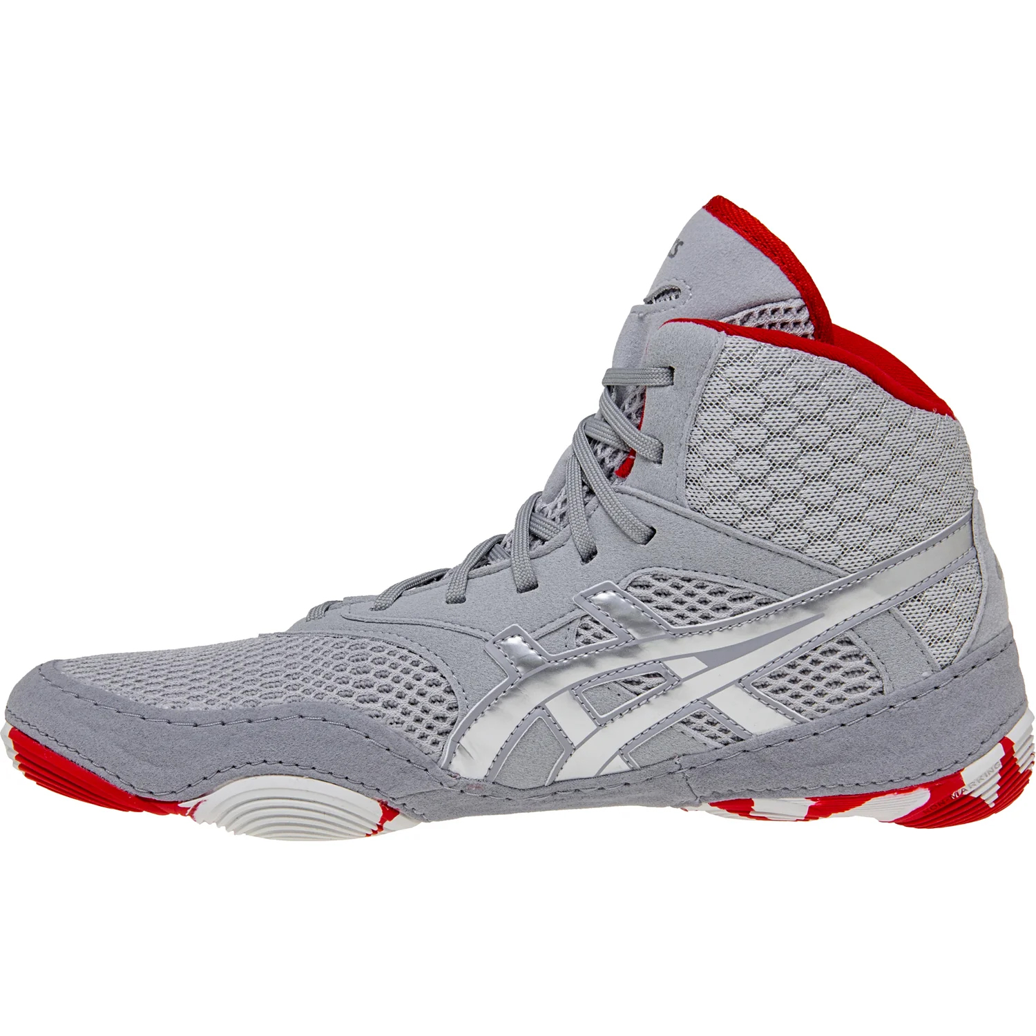 The full-length rubber outsole is optimized for grip, helping you maintain traction during takedowns and scrambles. A mid-cut silhouette adds ankle support without compromising flexibility, while the lace garage ensures your laces stay tucked in and match-ready.