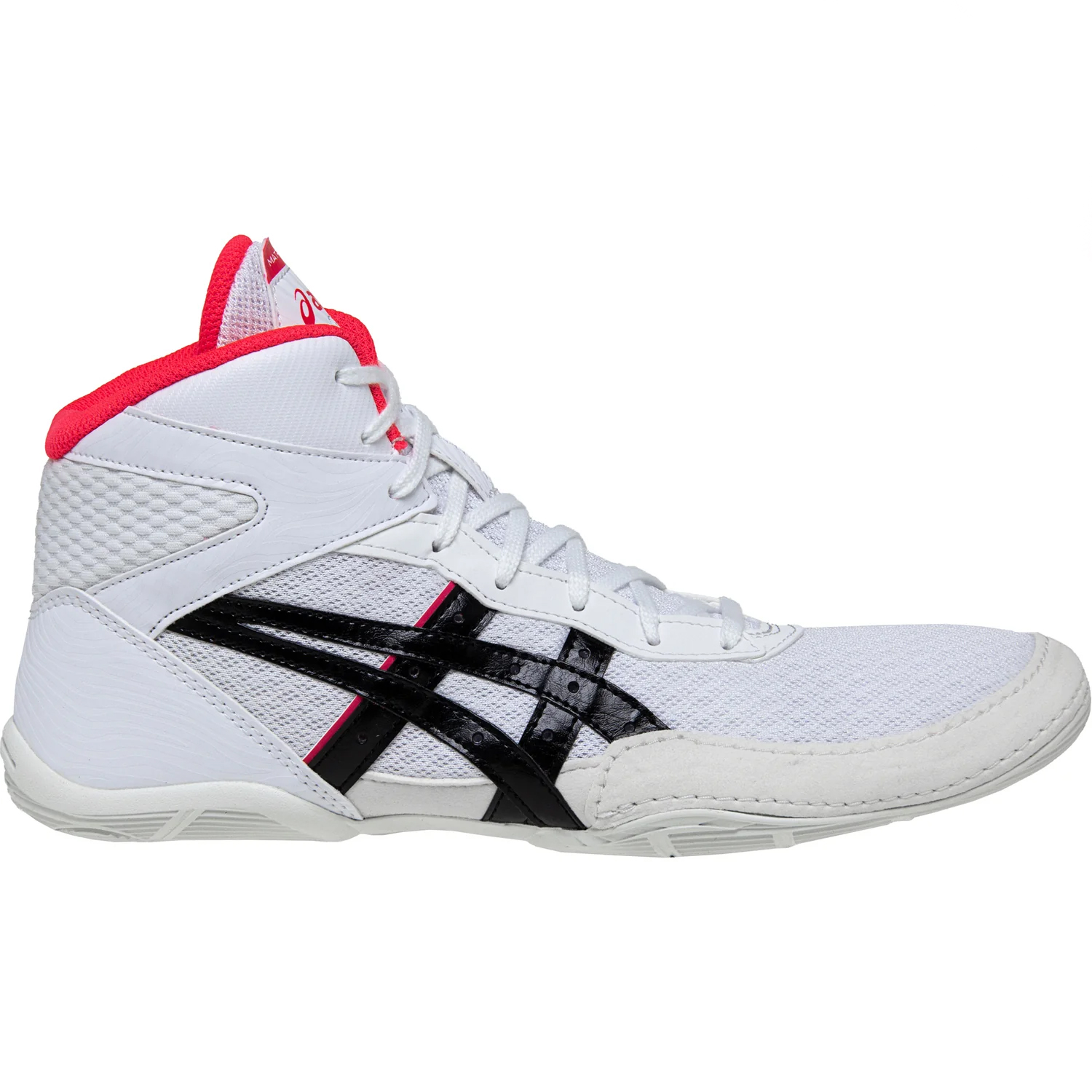 Support young wrestlers with the ASICS Youth Matflex 7 in White/Black/Hot Pink—lightweight, breathable, and built for dependable traction and comfort on the mat.